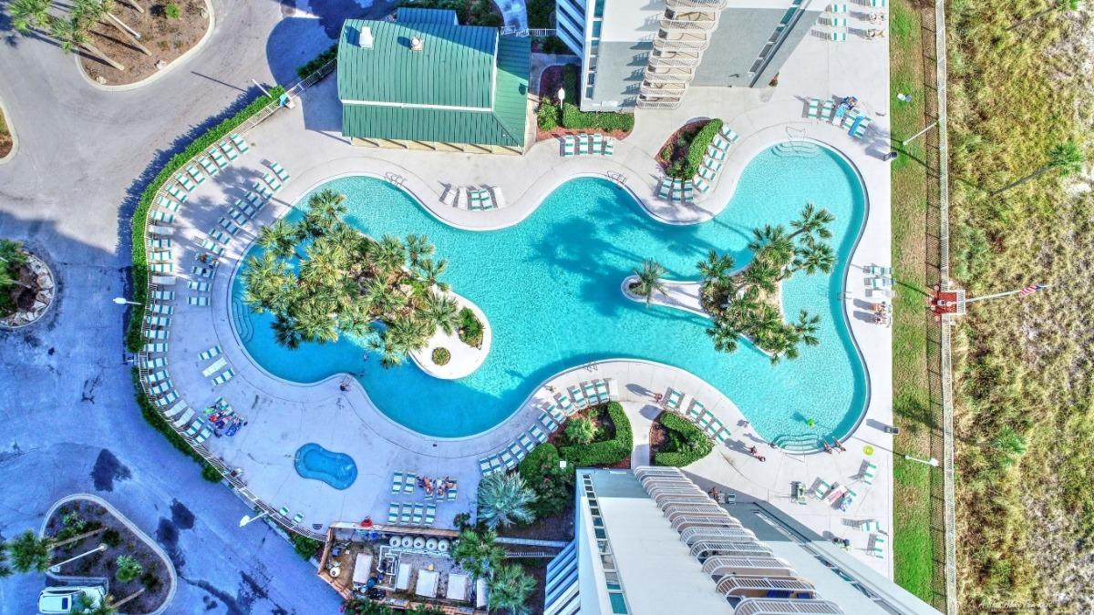 Splash Resort is located on the west end of PCB. This complex offers guests TONS of unique amenities including a splash pad, lazy river, seasonally heated pool, hot tub, fitness center, poolside bar & grill (open seasonally), and more!