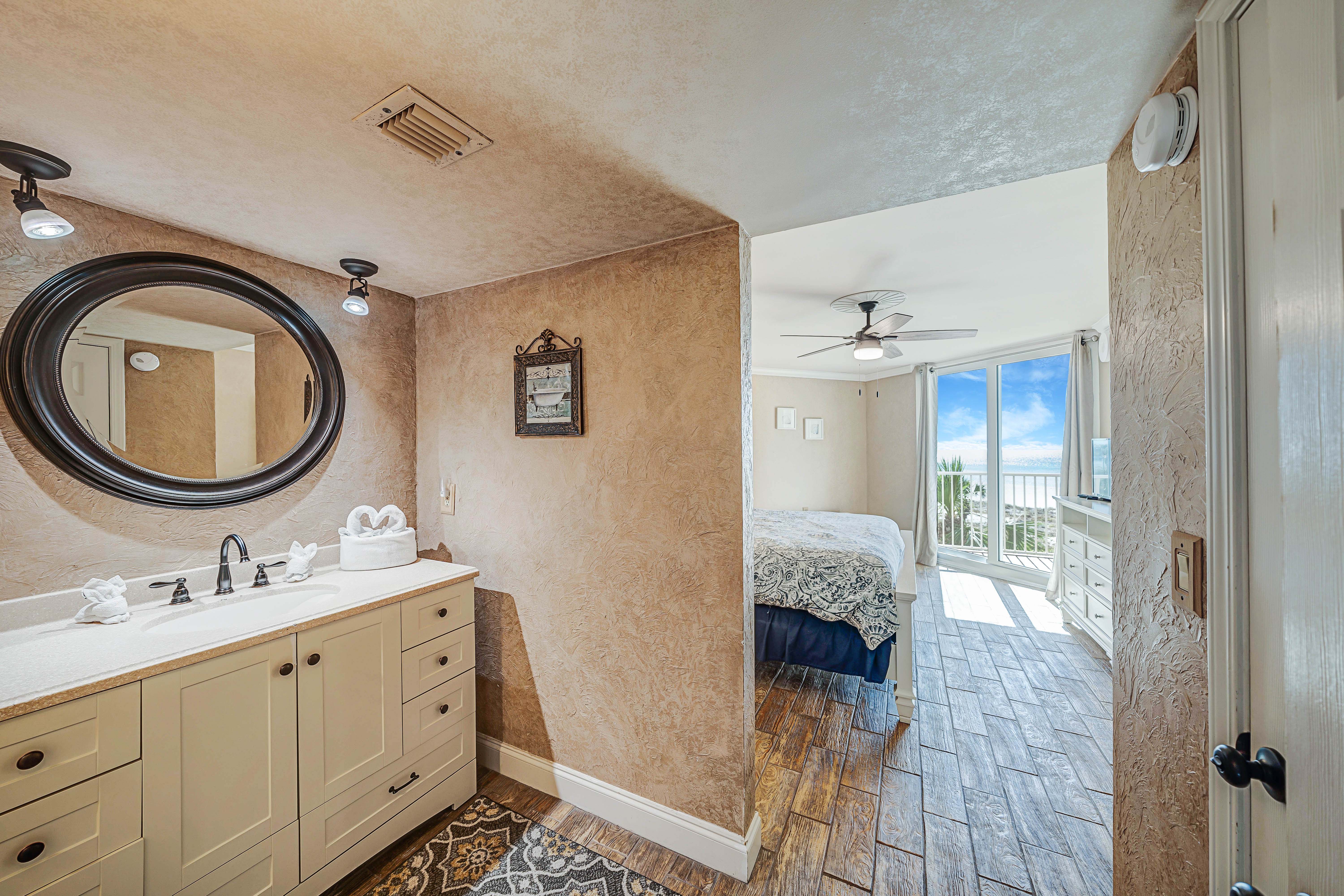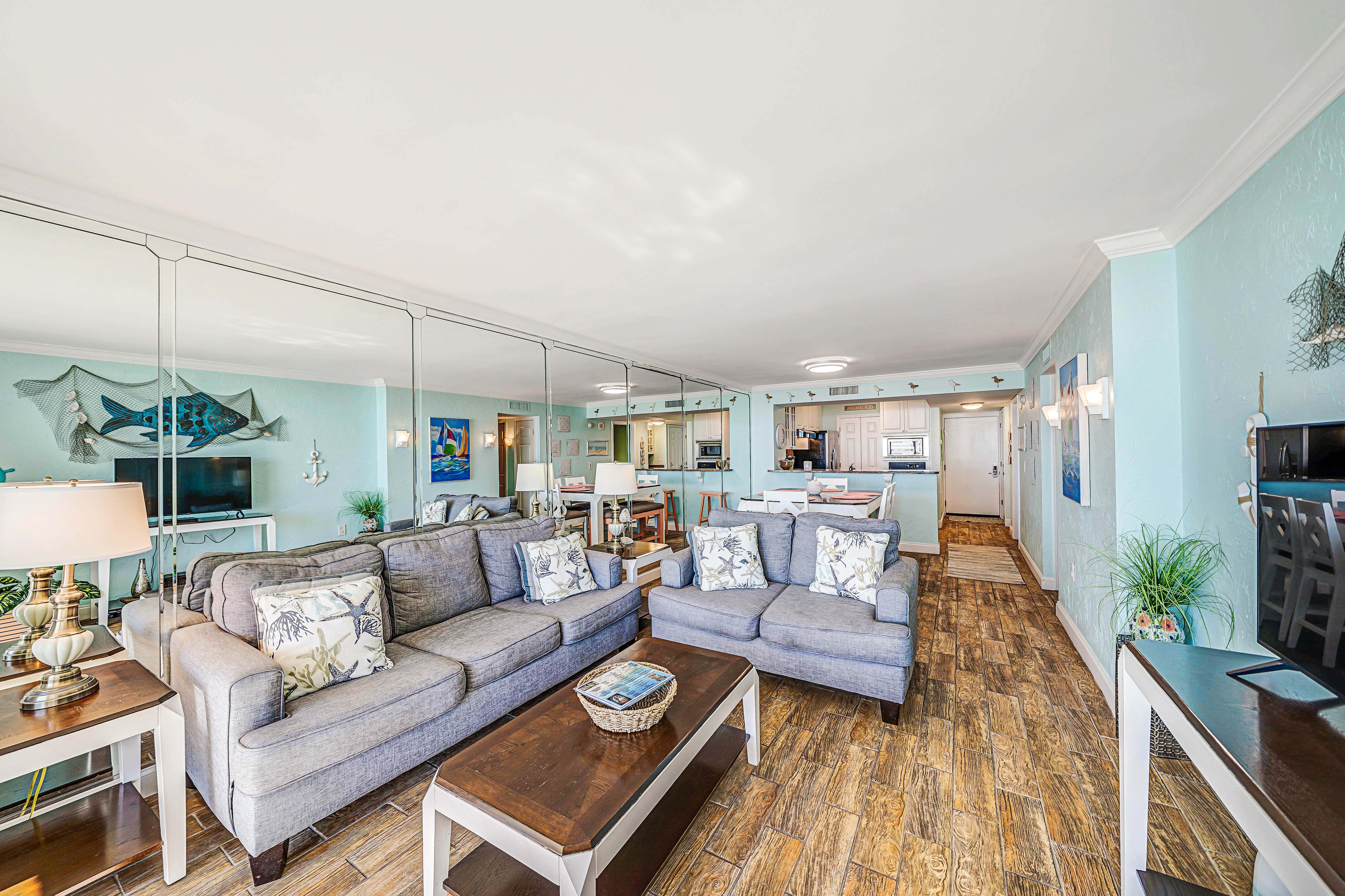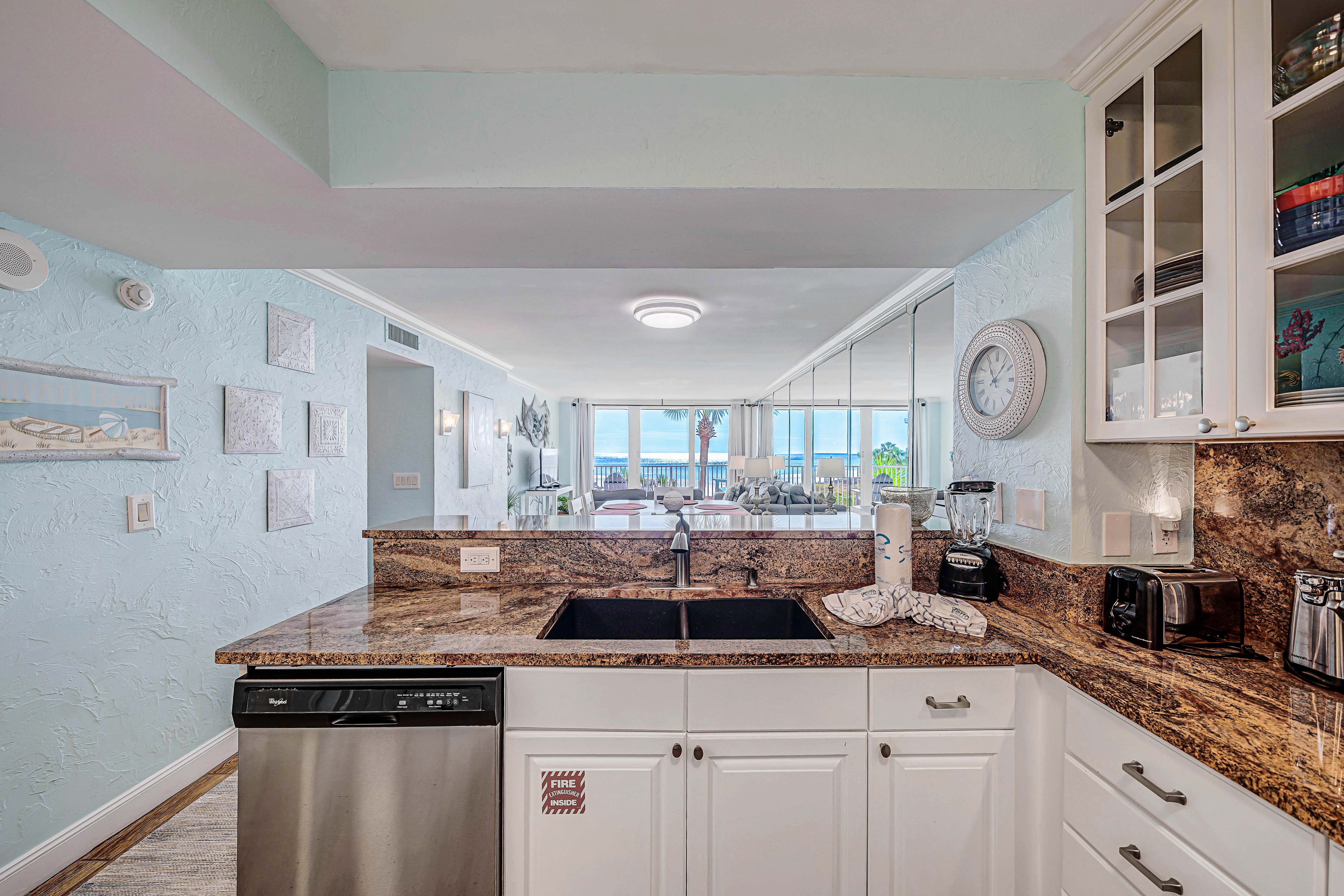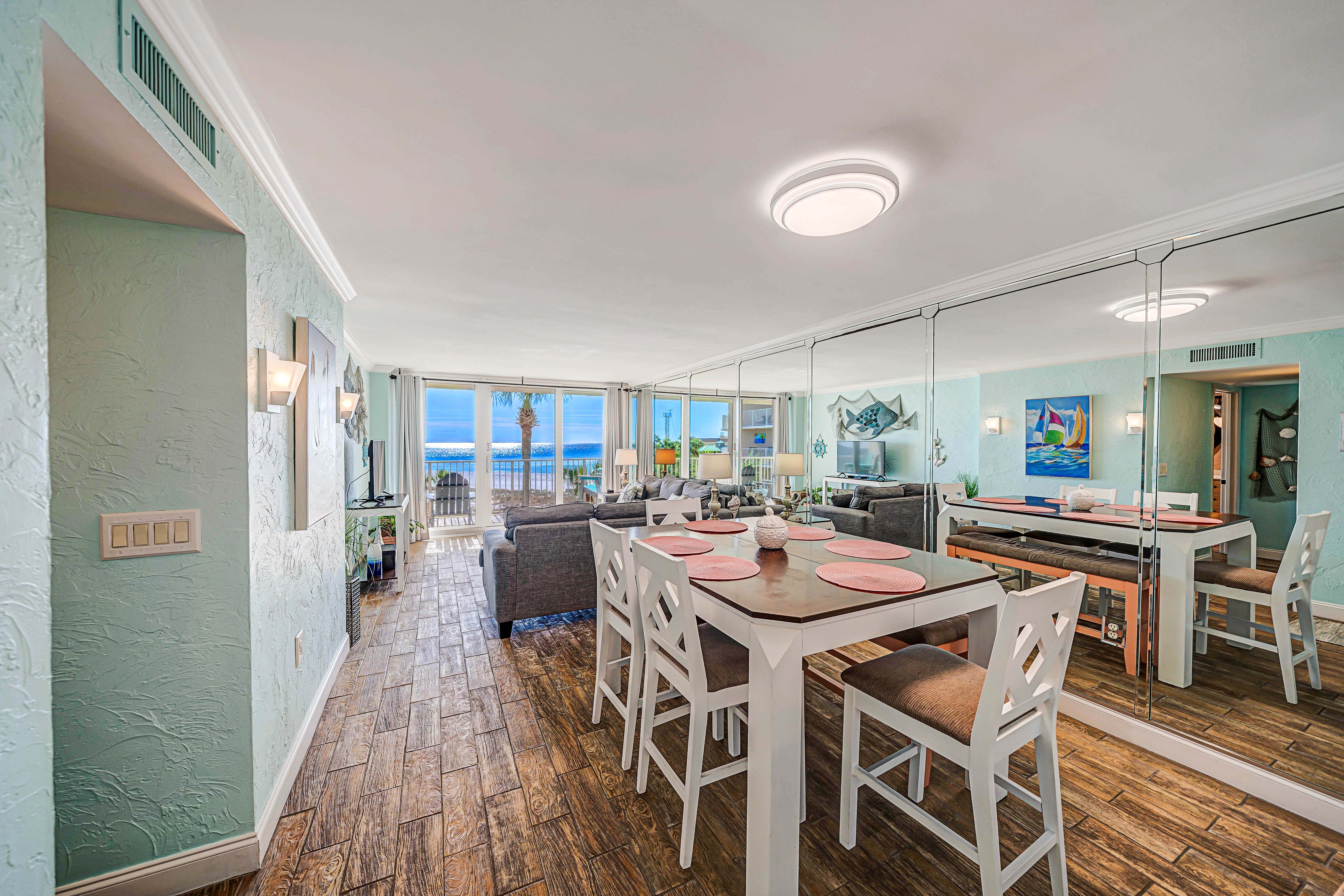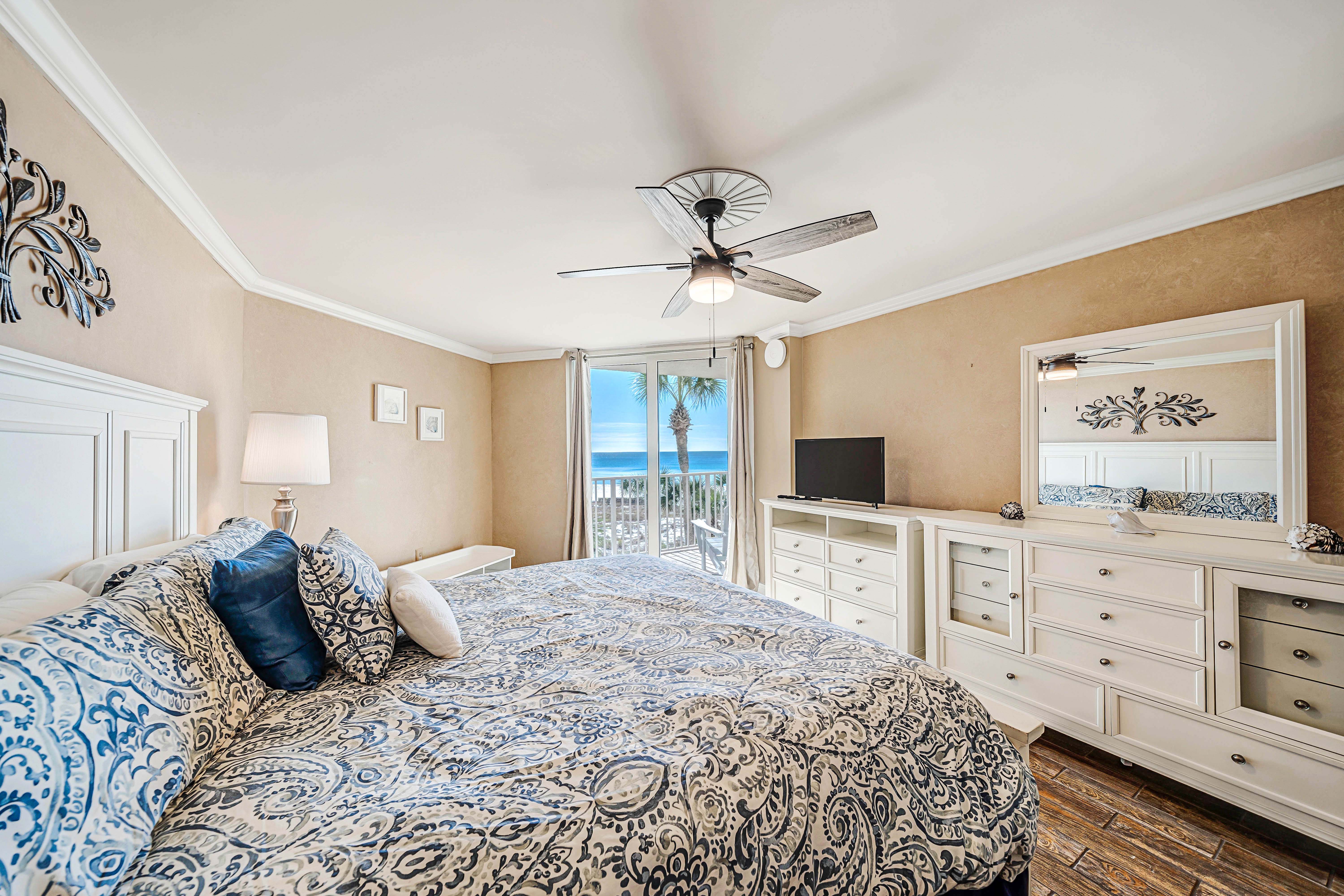 This unit offers 1,000 square feet of beachfront living space. The fully equipped kitchen features granite countertops, stainless-steel appliances, and has everything you need to prepare meals for family & friends. The living room offers ample, comfortable seating with views of the gulf, a Smart television w/DirectTV, and access to the unit's private balcony. The master bedroom offers a King size bed, Smart television w/DirectTV, and ensuite bathroom with a tub/shower combo. The second bedroom has both a full-size bed, as well as a twin, and its own Smart TV w/Direct TV, and the second full bathroom offers a walk-in shower. Additionally, the living room sofa pulls out into a Queen size bed, allowing the unit to comfortably sleep 7. For your convenience, there is a washing machine and dryer inside the unit for your use.