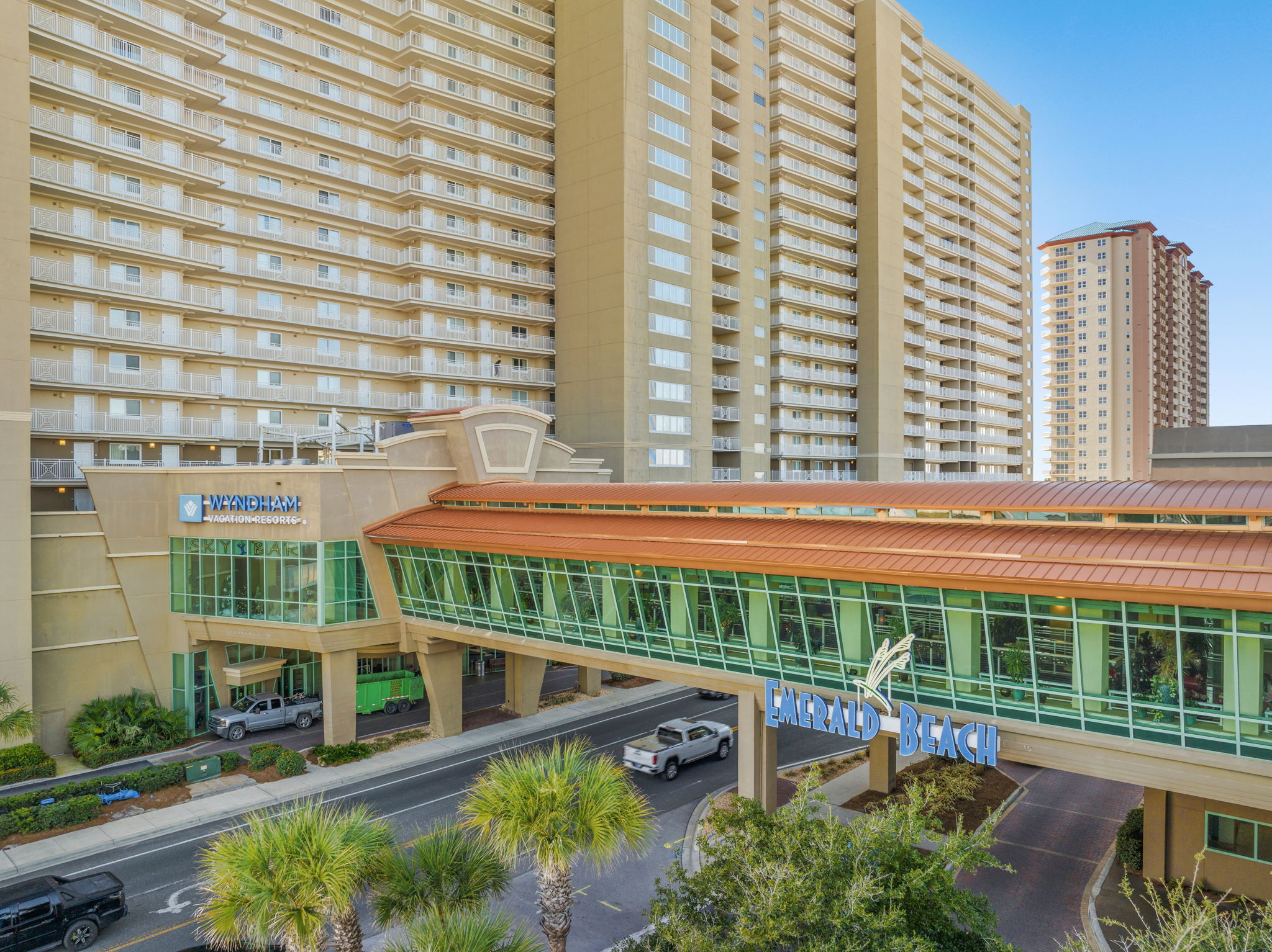 Emerald Beach Resort is located less than 2 miles from Pier Park which boasts 124 shops, The Grande IMAX theater, Dave & Buster's, Panama City Beach Skywheel, and a variety of other dining and entertainment options. This complex is less than 25 minutes from the airport and is within walking distance to Runaway Island, Senor Frog's, Sharky's, Zollo's Pizza, AutentiKa Mexican Grille, & more! Emerald Beach offers guests 2 outdoor swimming pools (beachfront is heated), a hot tub, poolside tiki bar, grills, fitness center, game room/activities center, a Starbucks Coffee, a Sunsations store, rooftop bar, & more!