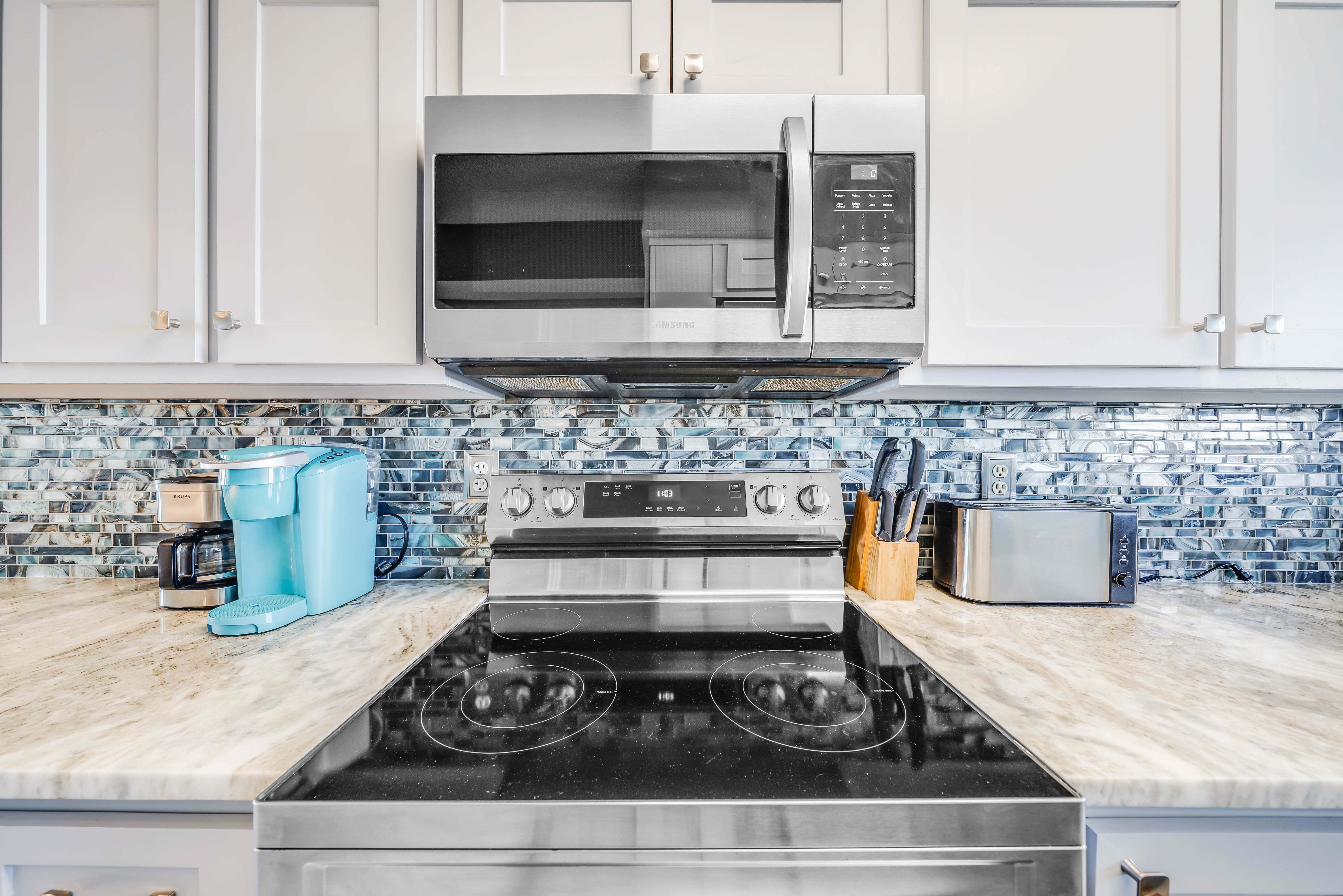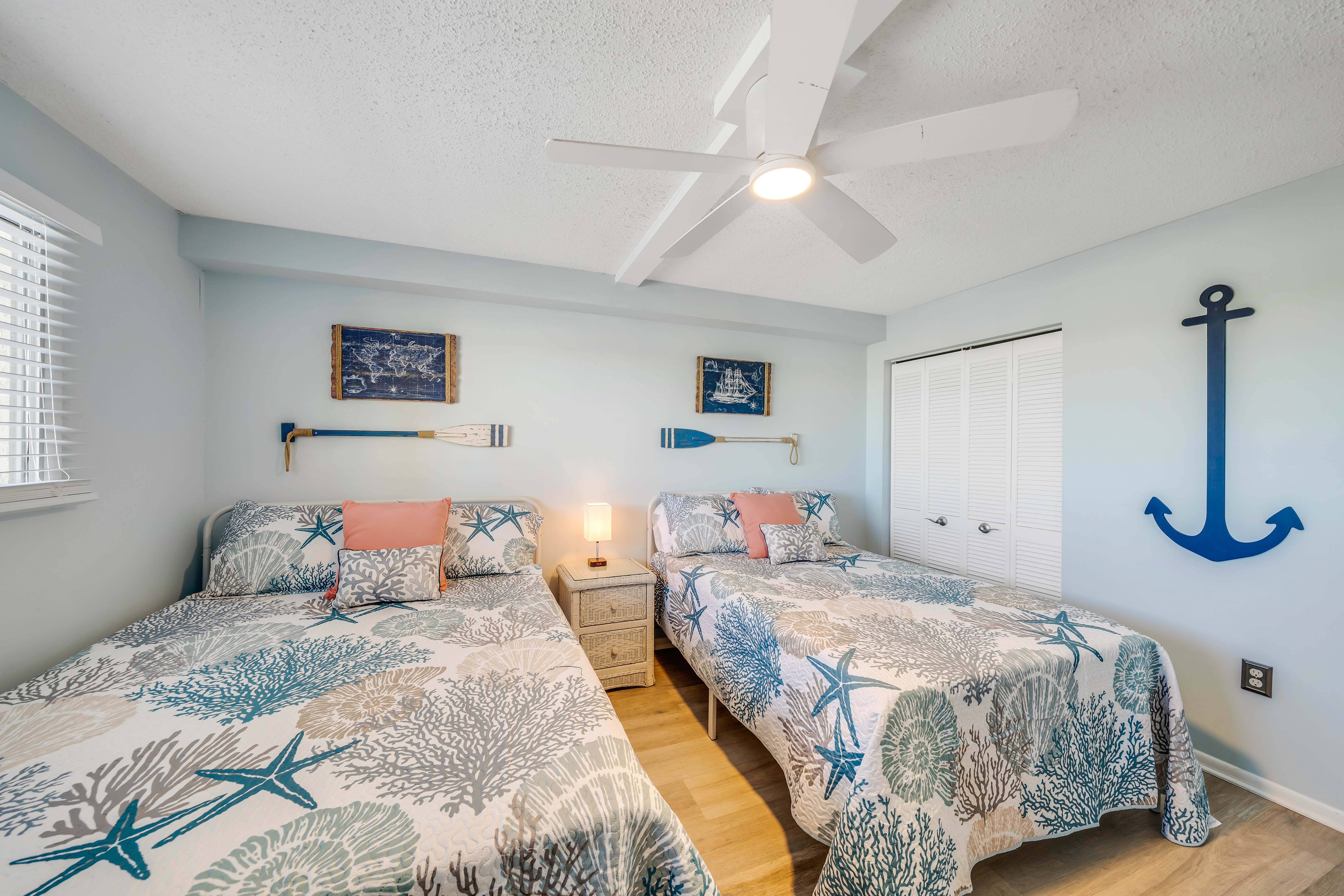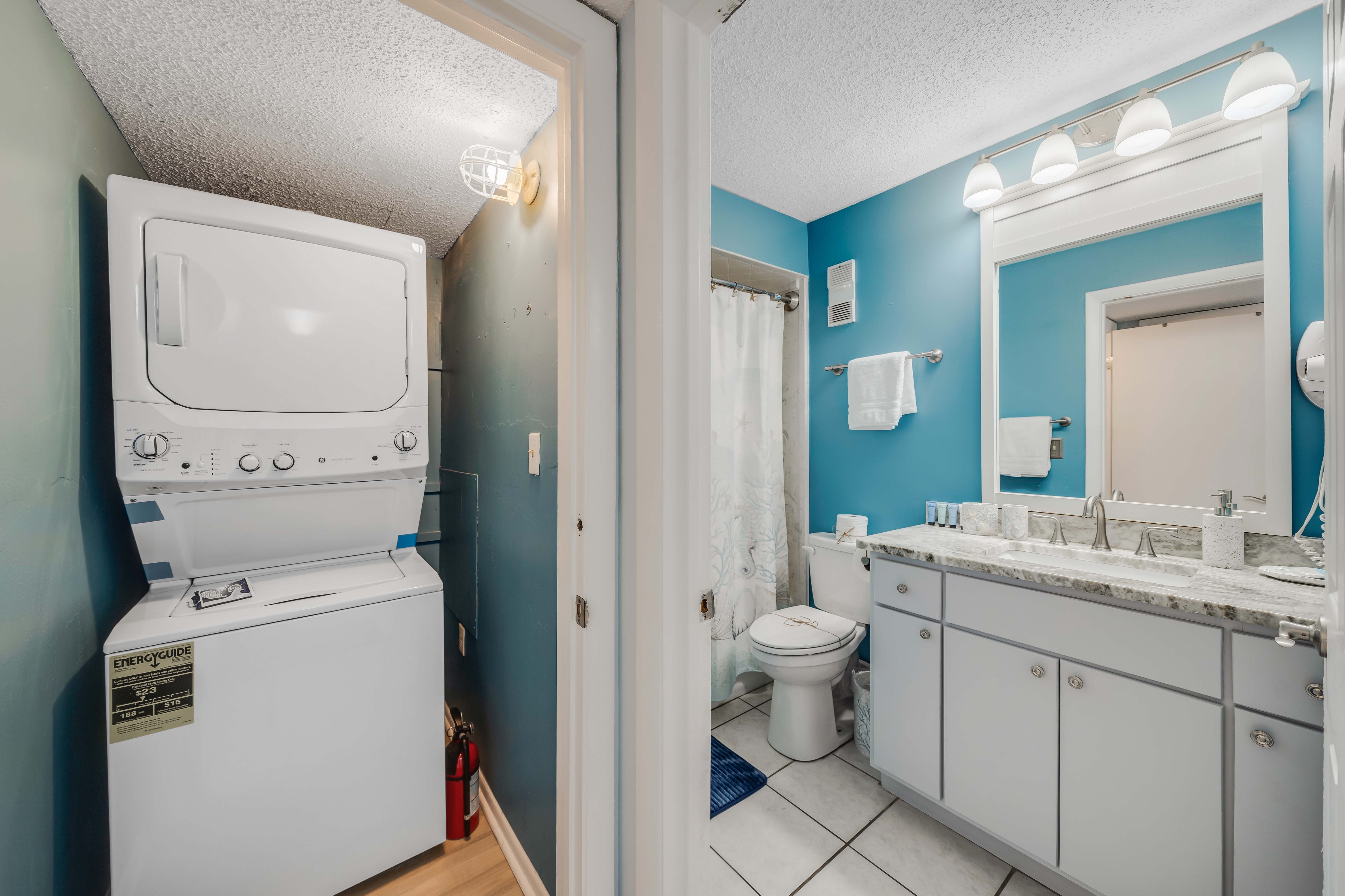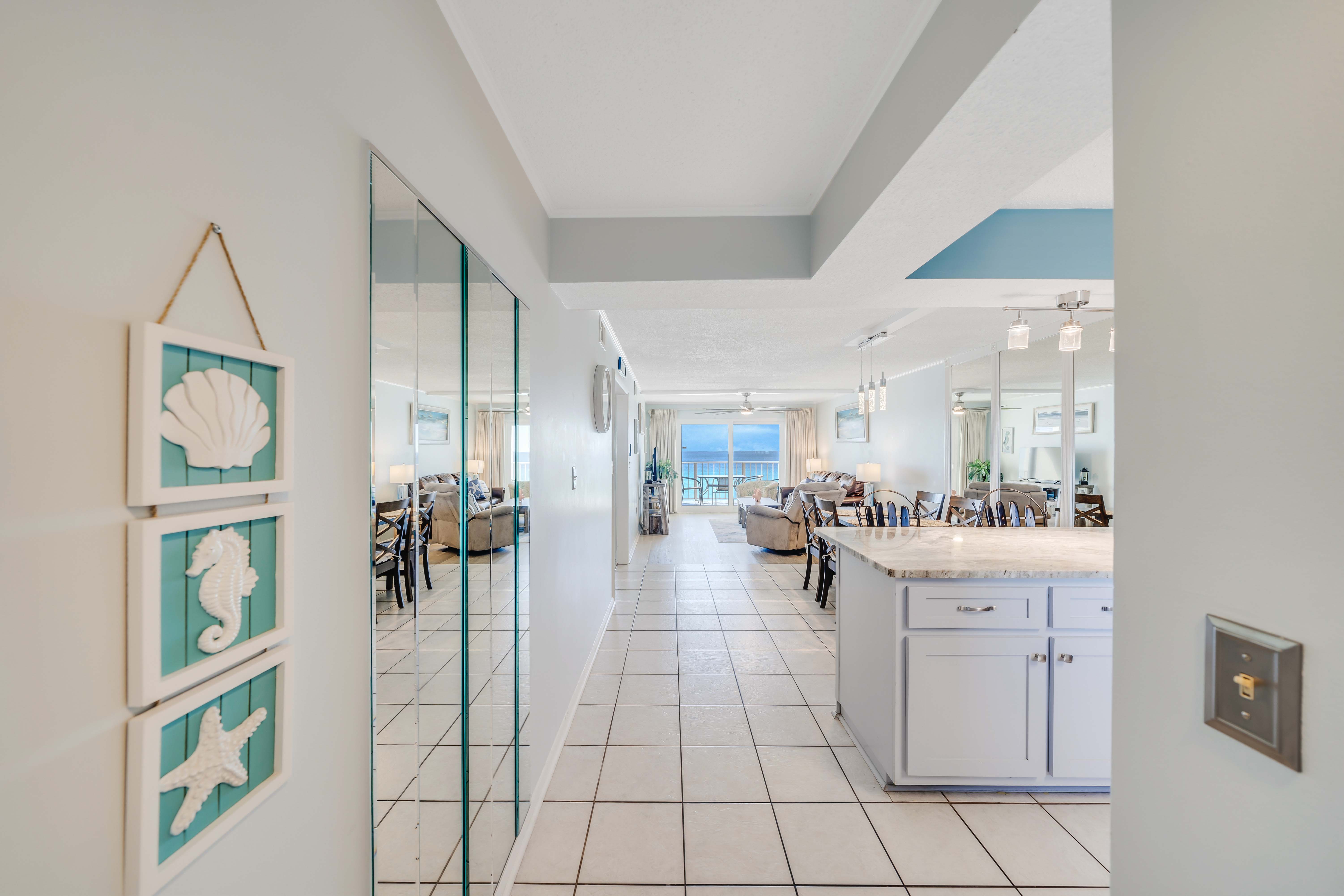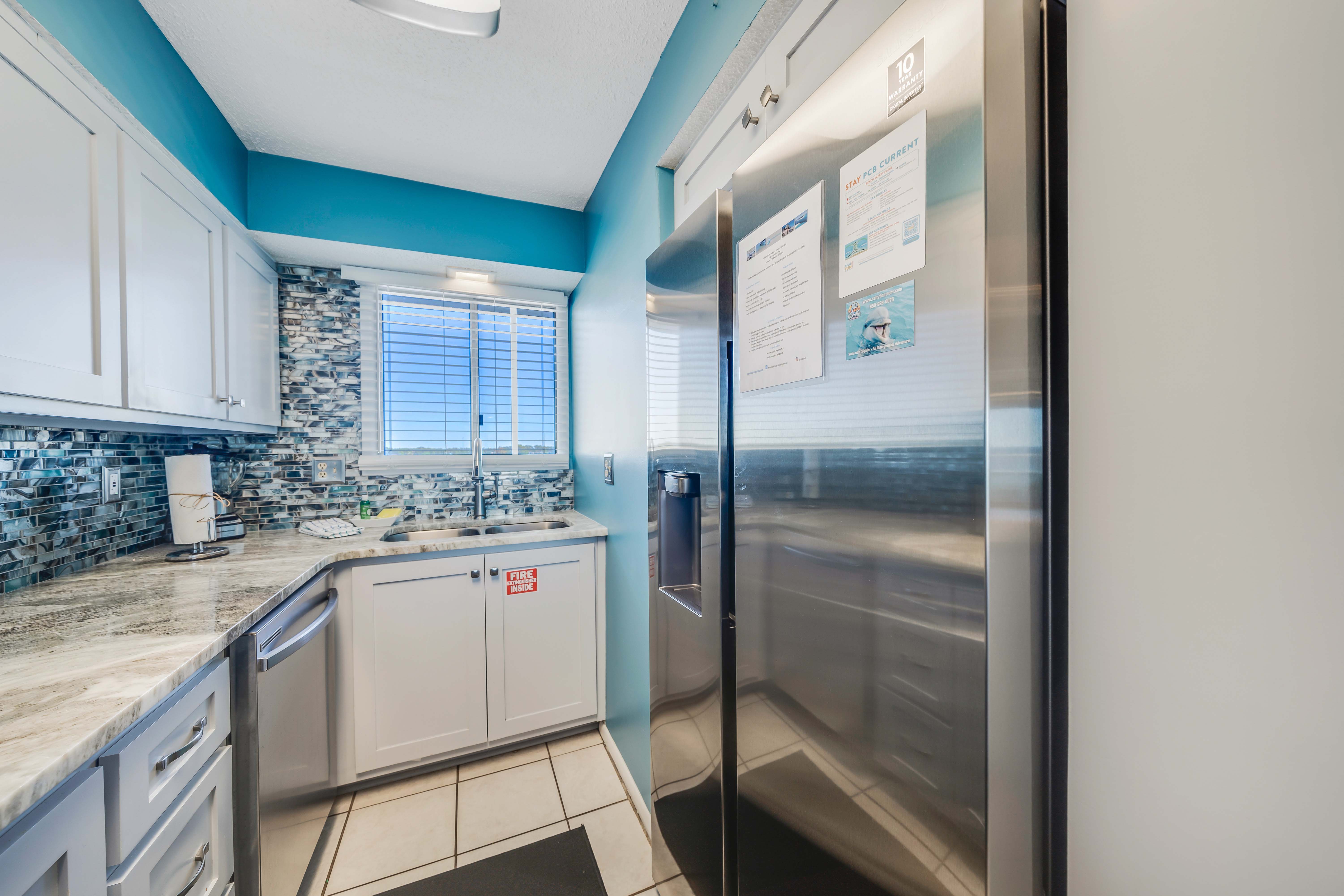 This spacious beachfront condominium unit offers almost 1,200 square feet of coastal living space. The fully equipped, updated kitchen features quartz countertops, stainless-steel appliances and has everything you need to prepare meals for family & friends. The living room and dining area offer ample, comfortable seating with incredible views of the gulf, a large television, and access to the unit's private balcony overlooking the beach. The master bedroom also has gulf views, a King-sized bed, television, and its own ensuite bathroom. The second bedroom has a both a Full and Queen-sized bed and its own television. There is a second full bathroom located off the hall. The living room sofa pulls out into a bed, allowing the unit to comfortably sleep 8. For your convenience, there is also a washing machine and dryer inside the unit for your use.