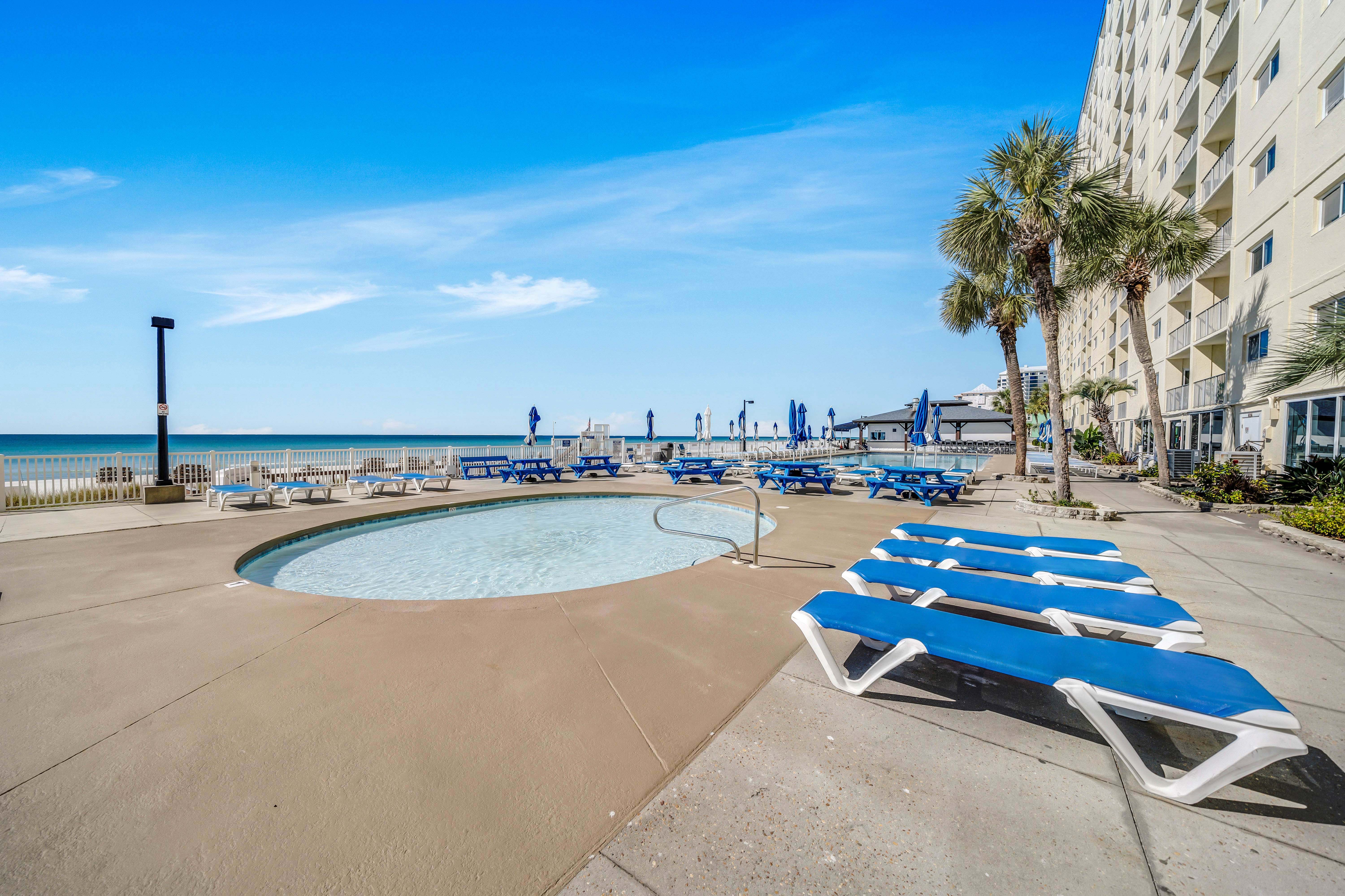 This Regency Towers, 2-bedroom, 2 bath beachfront condo is located in the highly sought after east end of Panama City Beach. It is close to St. Andrew's State Park, pontoon rentals, and some of the best restaurants in our area. This 6th floor unit has both gulf and pool views. Regency Towers offers guests amazing amenities including 2 large swimming pools (one heated year-round), indoor hot tub, kiddie pool, poolside bar & grill (open seasonally), outdoor showers, picnic areas with grills, billiards room, & fitness center!