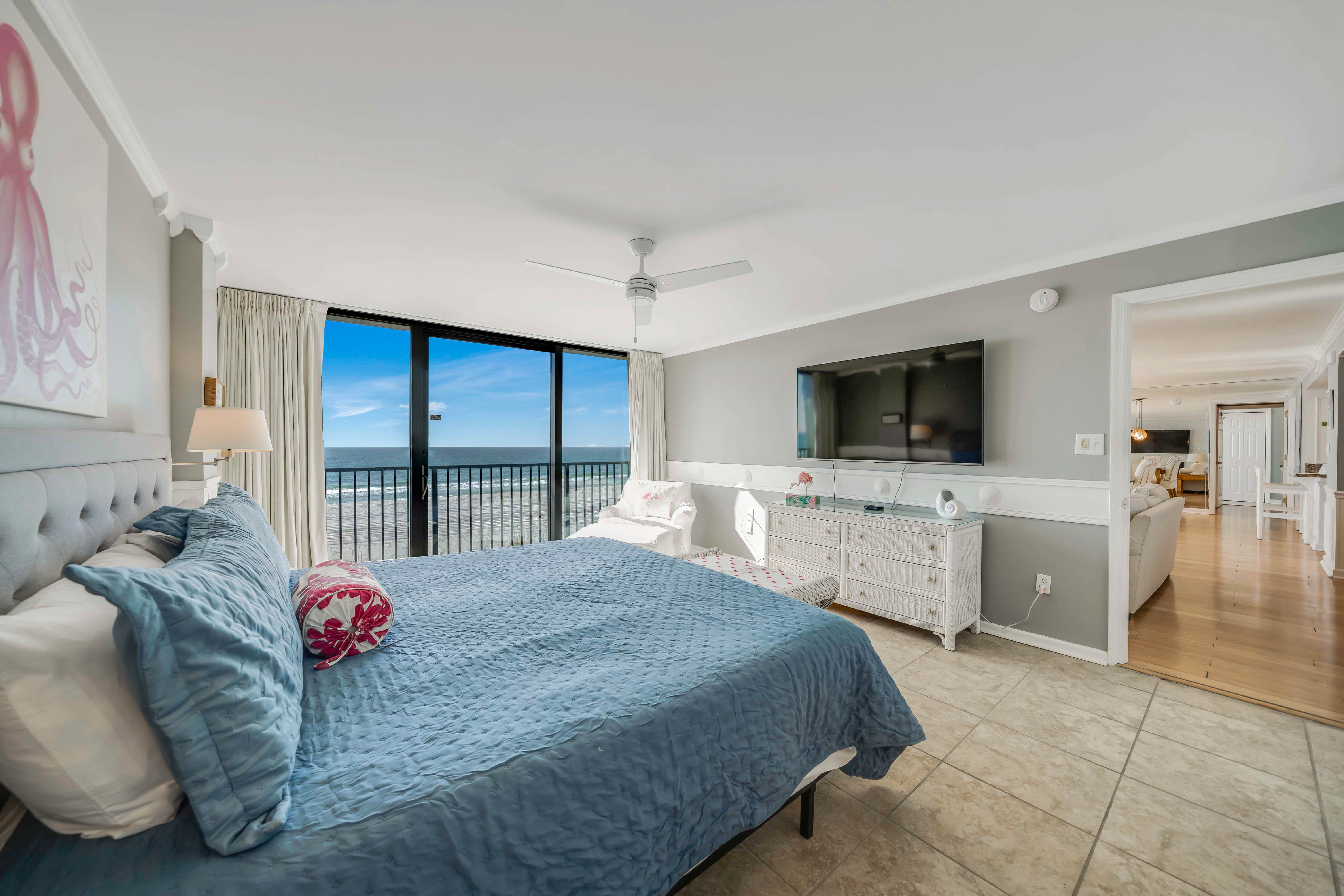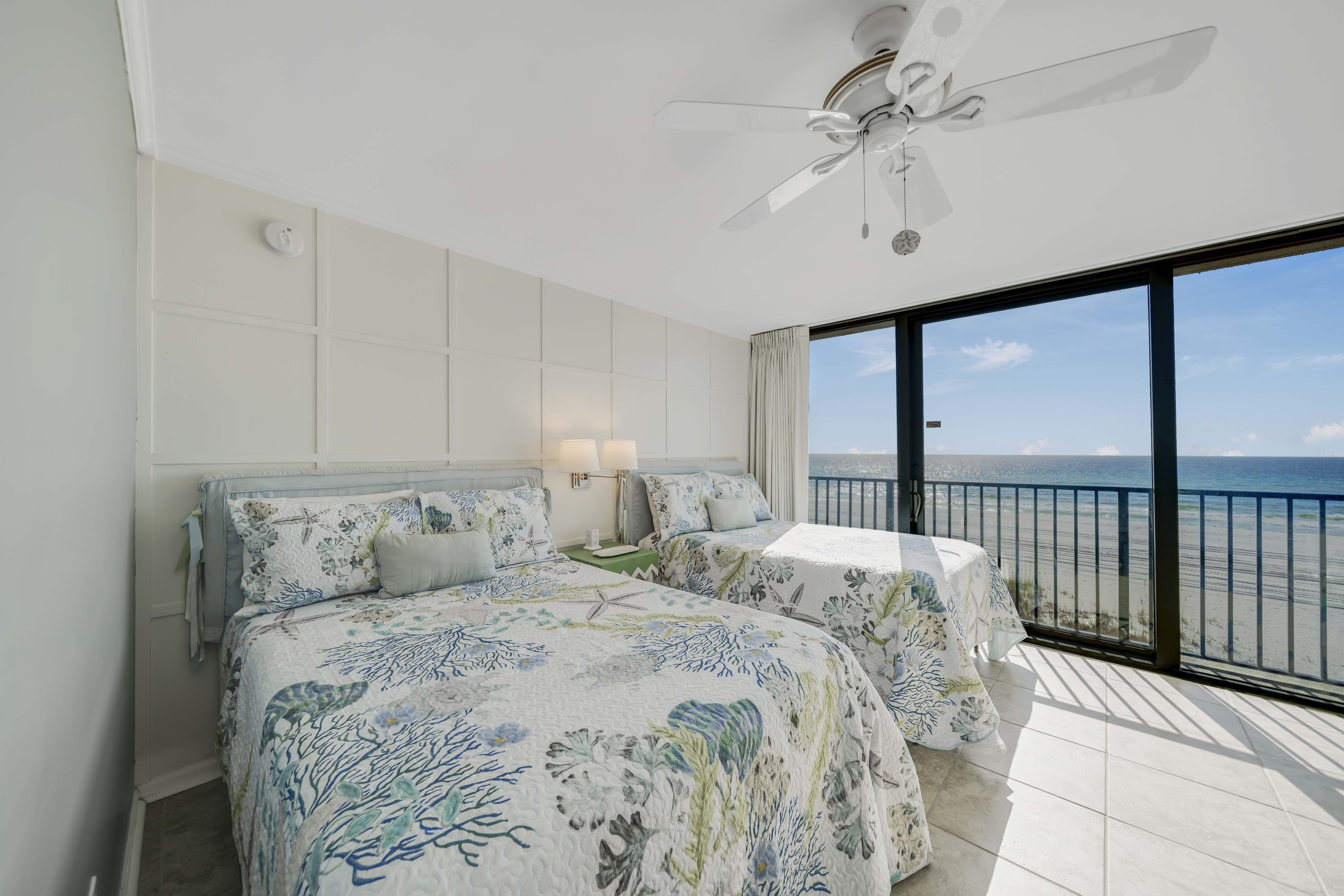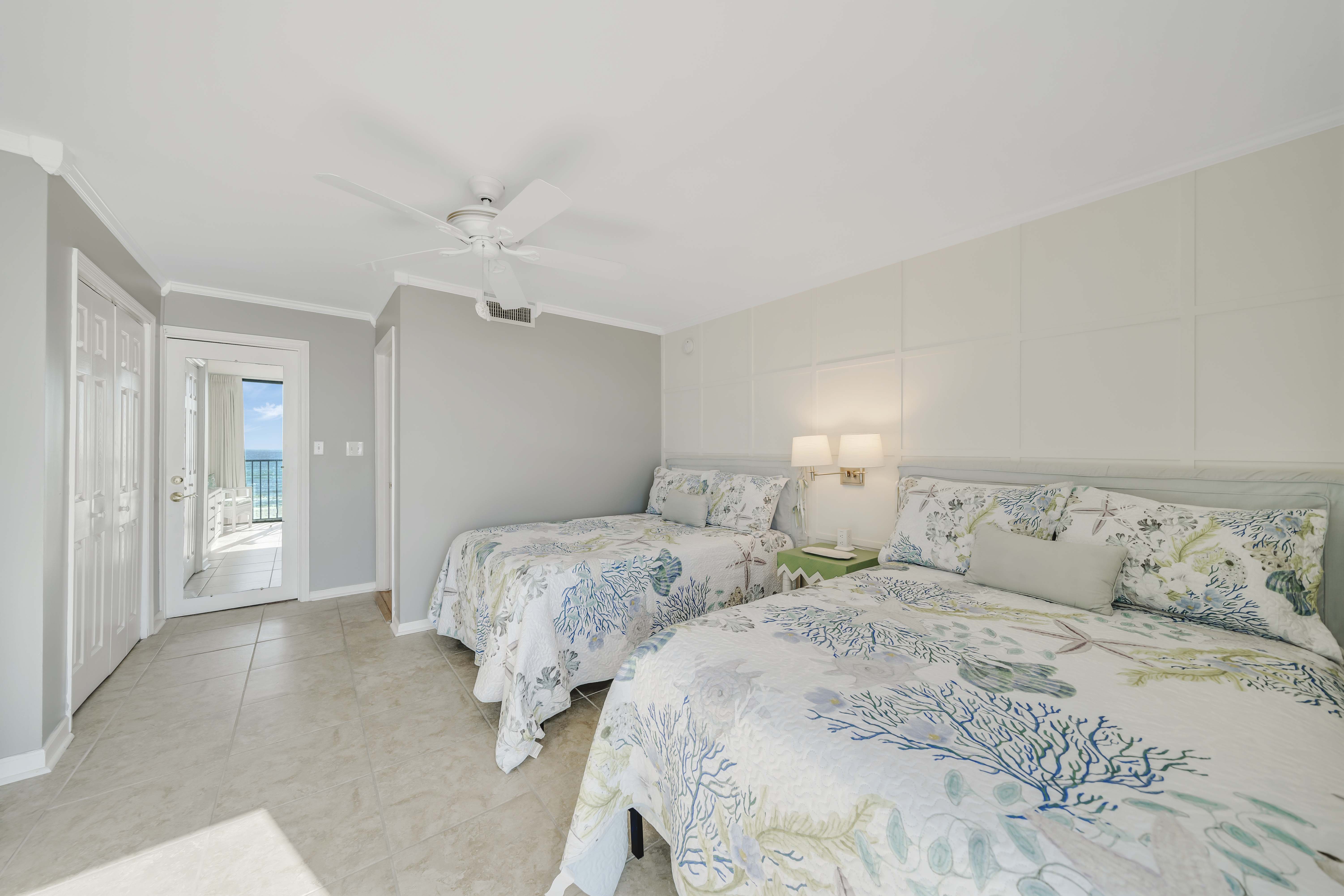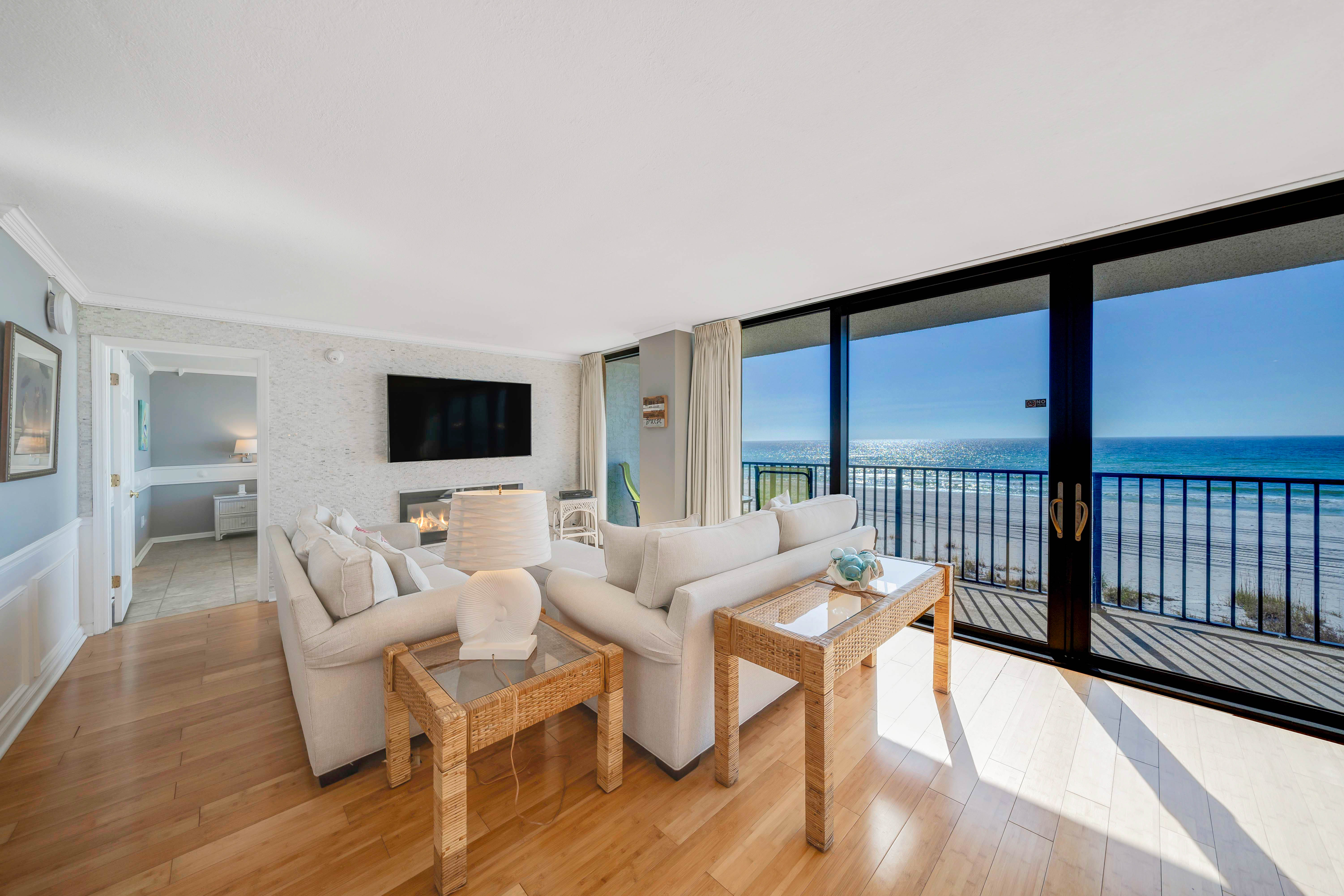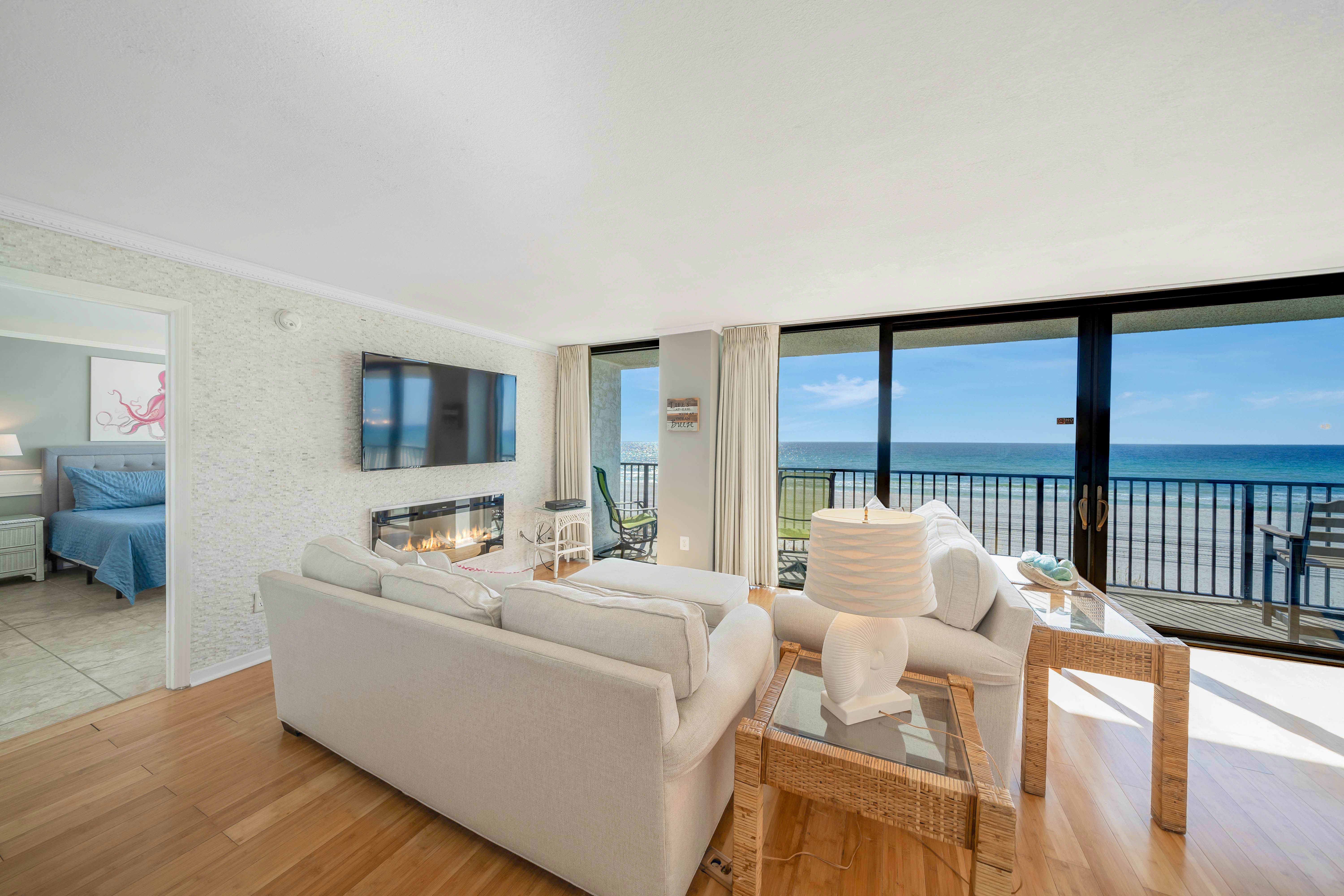 If you are looking for unobstructed views of the gulf from every room in your condo, this unit is for you! This lovely Seachase condominium boasts 1,400 square feet of living space with 2 gulf front master suites, one on each end of the unit. Each bedroom has its own full bathroom and spacious walk-in closet with a King bed in one bedroom and 2 Queen beds in the other. The living room features a pull-out sofa, allowing the unit to comfortably sleep 8. The generous sized, gulf front living/dining area and kitchen are located in the center of the unit. The fully equipped kitchen has a range oven, dishwasher, garbage disposal, refrigerator, microwave, and a full-sized washer and dryer. Every room has floor-to-ceiling windows, totaling 60 feet of wall-to-wall views of the gulf. This unit also features an electric fireplace in both the living room and master bedroom. Watch the beautiful sunsets while relaxing on your large, private balcony.