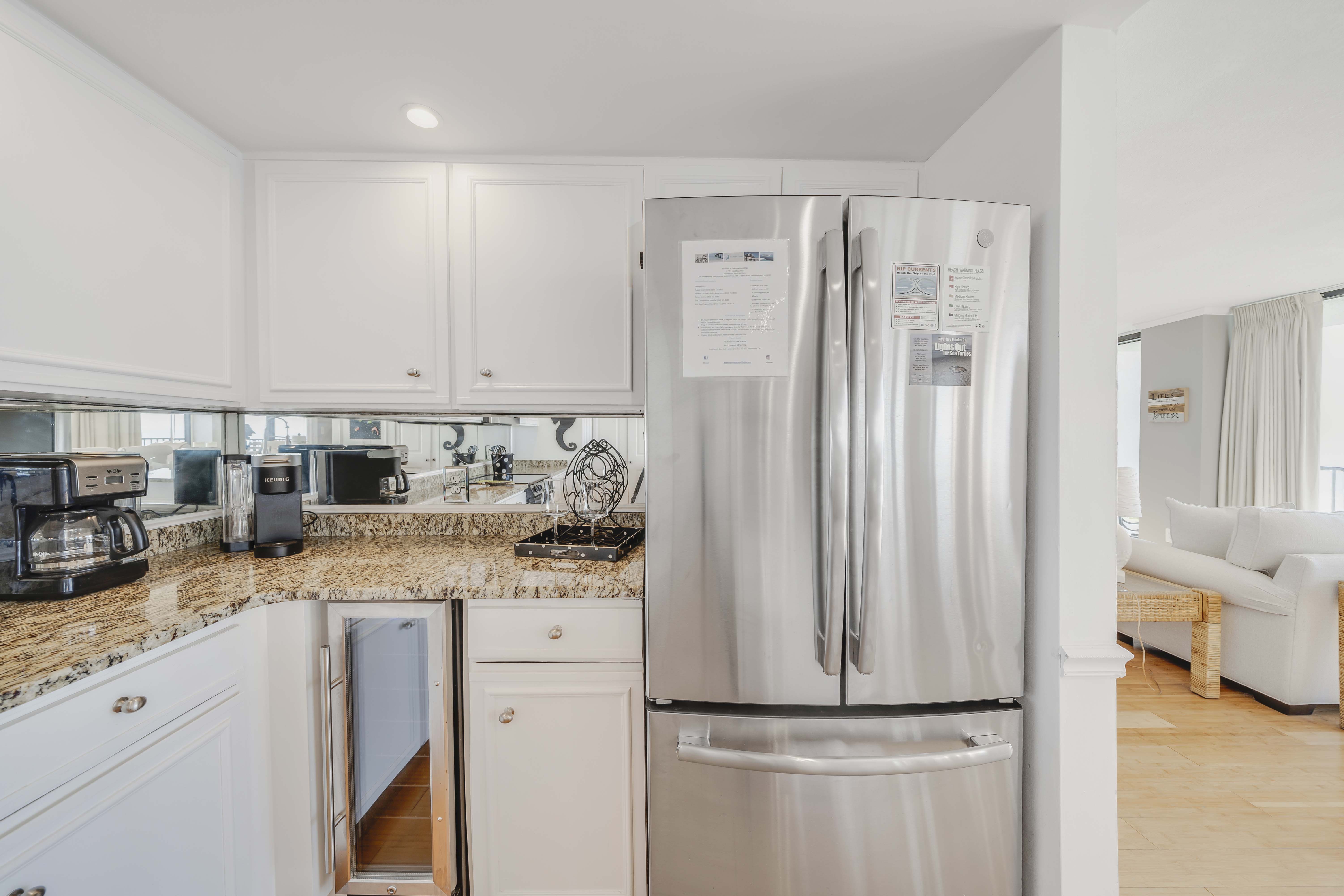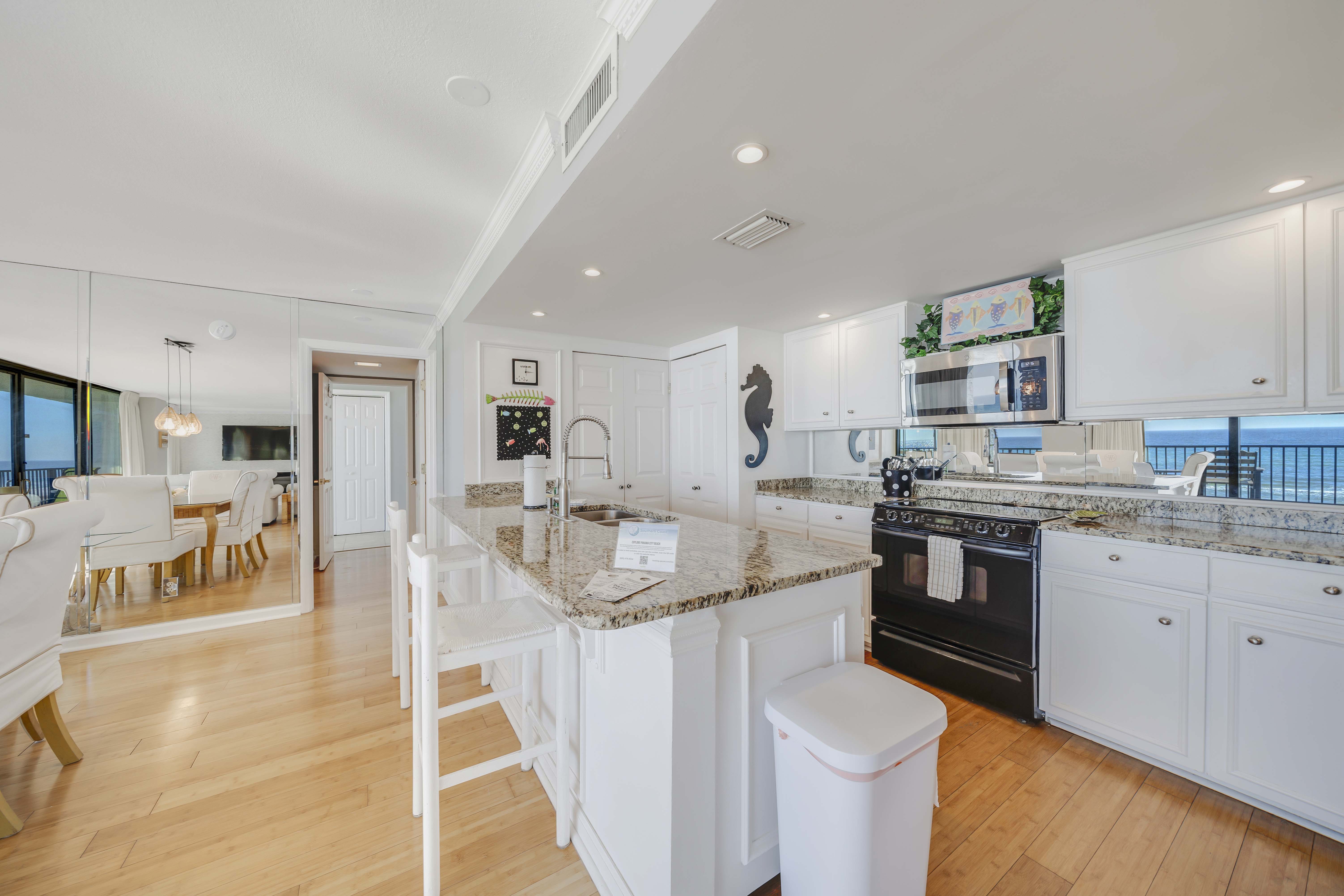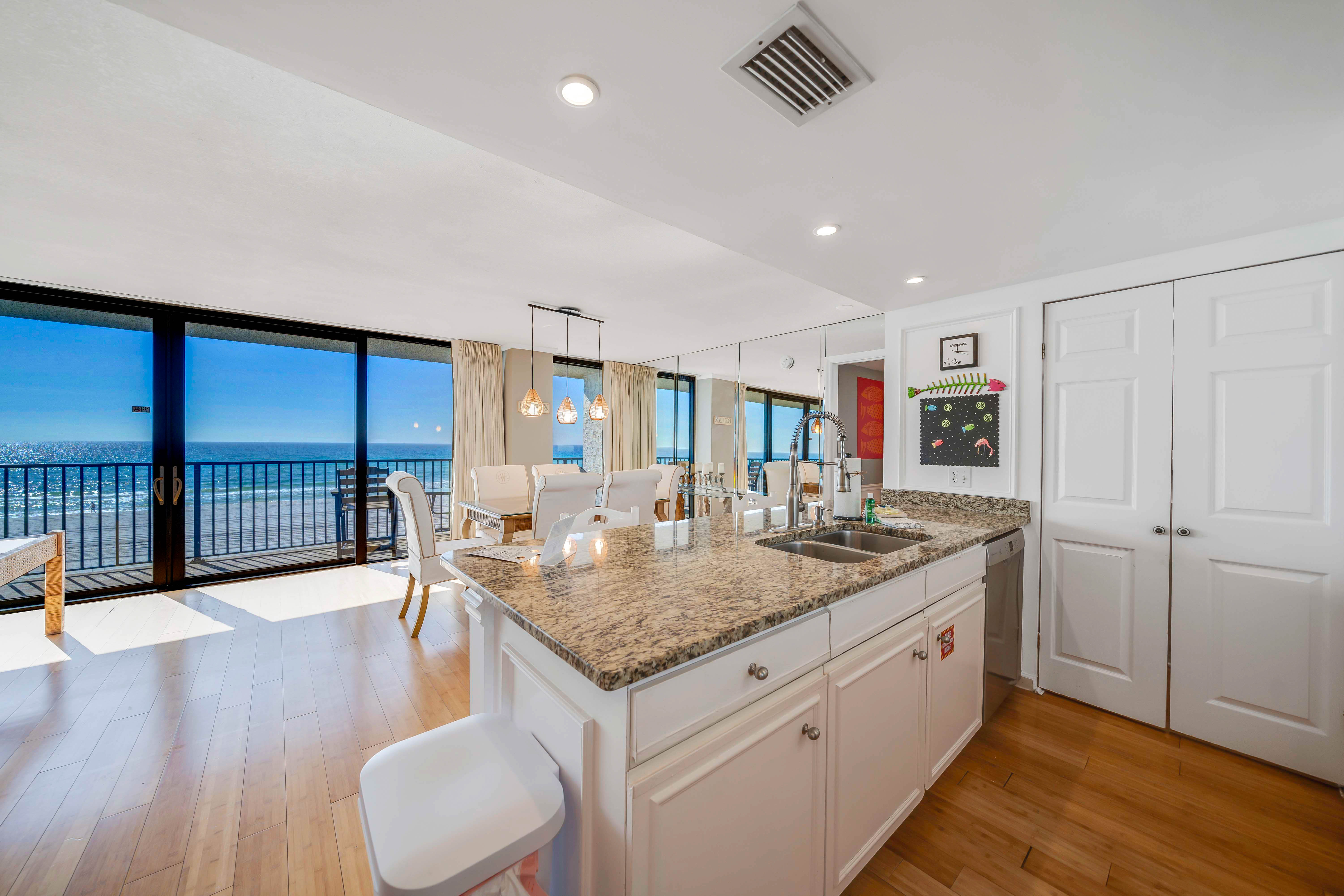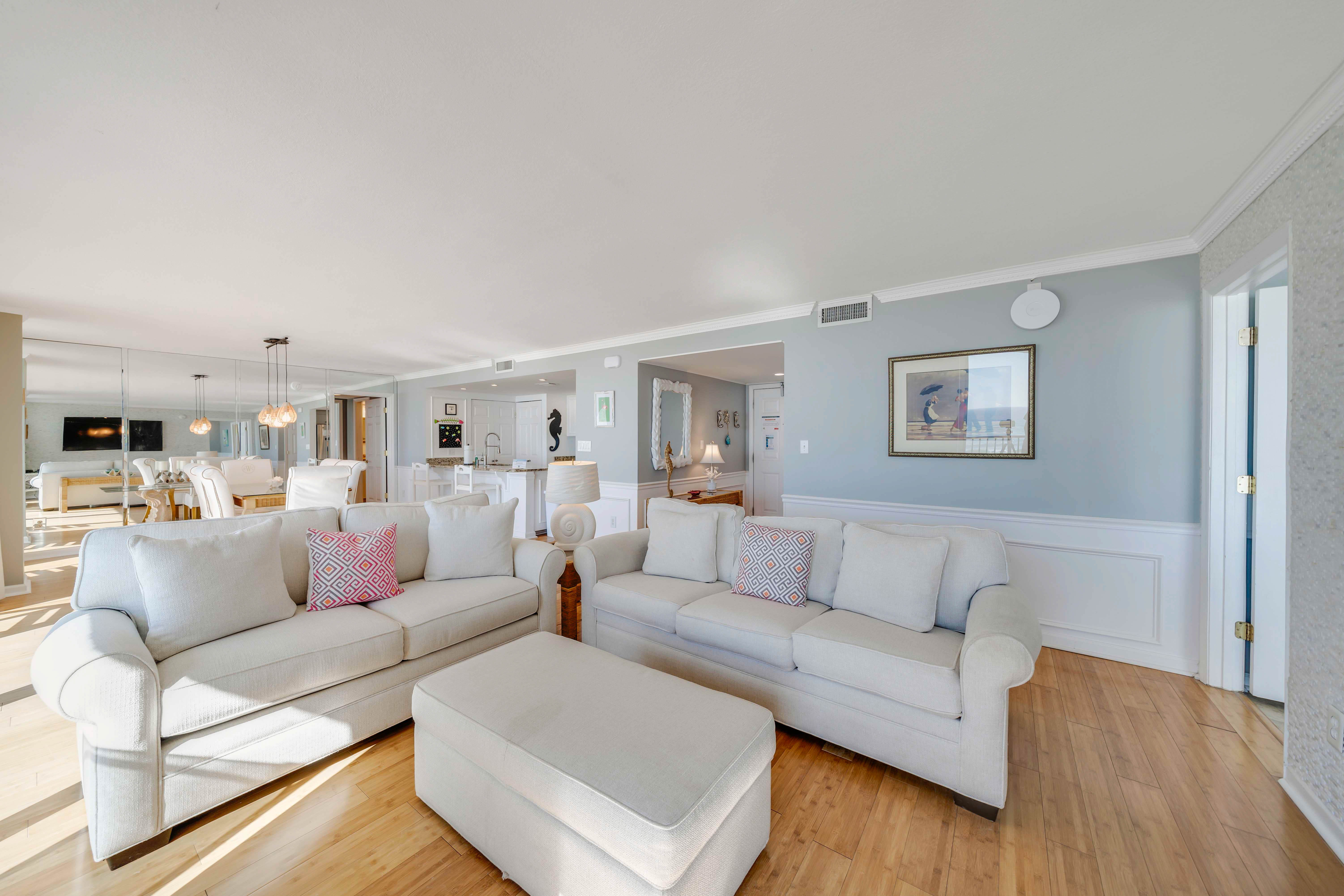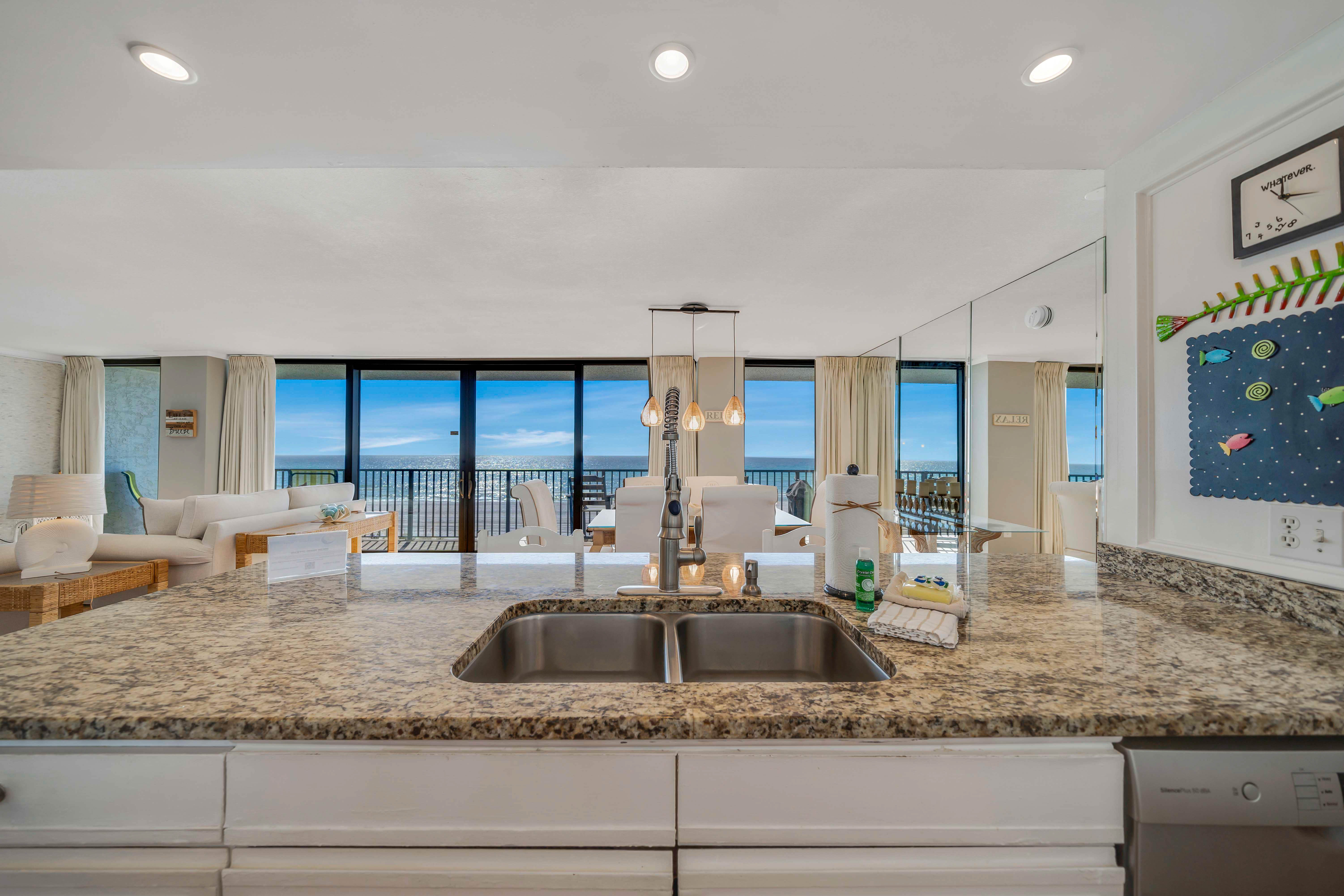 If you are looking for unobstructed views of the gulf from every room in your condo, this unit is for you! This lovely Seachase condominium boasts 1,400 square feet of living space with 2 gulf front master suites, one on each end of the unit. Each bedroom has its own full bathroom and spacious walk-in closet with a King bed in one bedroom and 2 Queen beds in the other. The living room features a pull-out sofa, allowing the unit to comfortably sleep 8. The generous sized, gulf front living/dining area and kitchen are located in the center of the unit. The fully equipped kitchen has a range oven, dishwasher, garbage disposal, refrigerator, microwave, and a full-sized washer and dryer. Every room has floor-to-ceiling windows, totaling 60 feet of wall-to-wall views of the gulf. This unit also features an electric fireplace in both the living room and master bedroom. Watch the beautiful sunsets while relaxing on your large, private balcony.