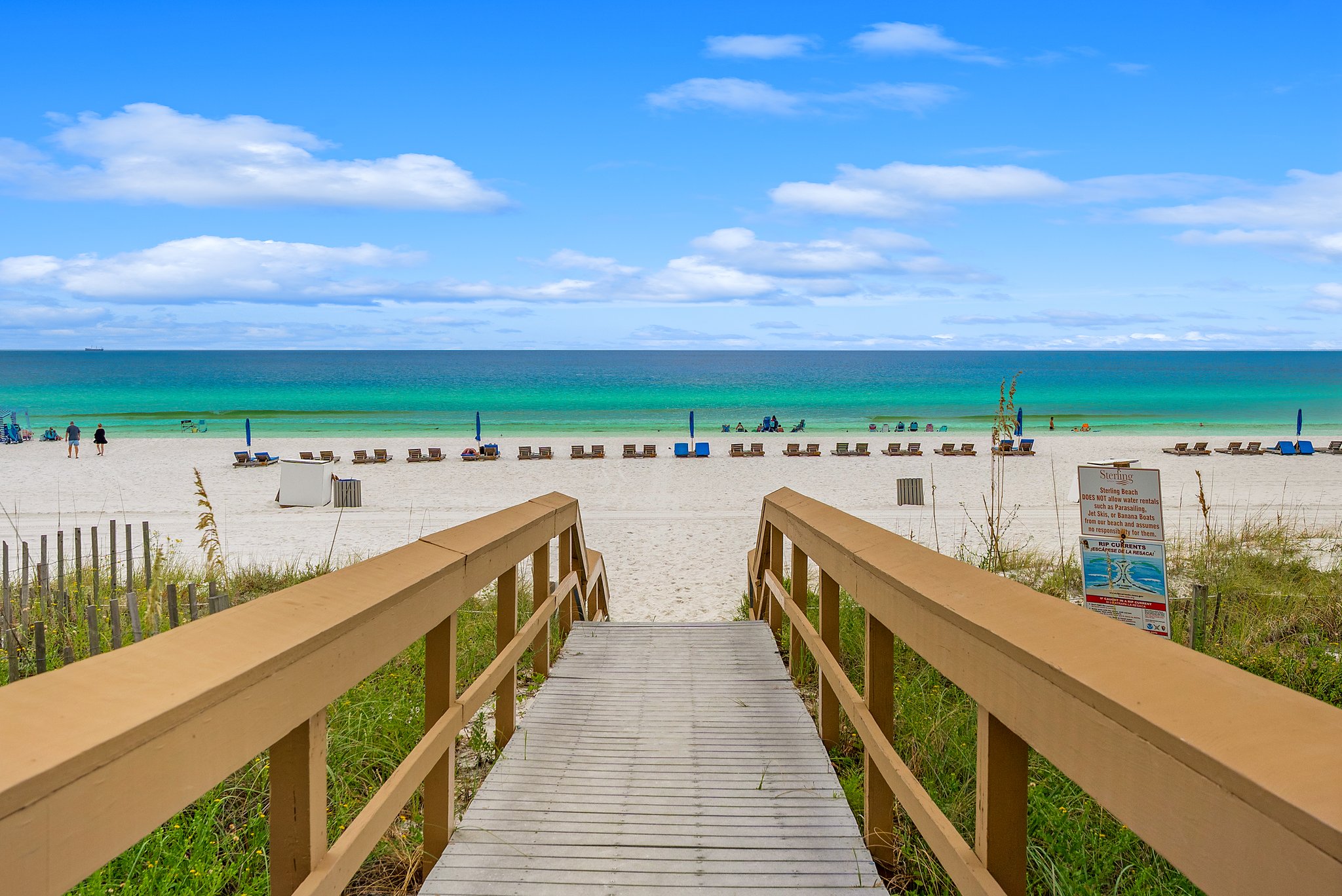 This incredibly spacious and tastefully decorated 3-bedroom, 2-bathroom 12th floor Sterling Beach condominium is located in the highly sought after east end of Panama City Beach. It is close to St. Andrew's State Park, pontoon rentals, and some of the best restaurants in our area. This twelfth-floor beachfront unit has breathtaking gulf and pool views. Sterling Beach is an exceptionally well-maintained complex with plenty of ground level parking (no parking garage), giving guests easy access! This complex offers a 4000sf gulf front swimming pool (heated in cold months), hot tub, gas grills, a theatre, meeting room, & a fitness center.